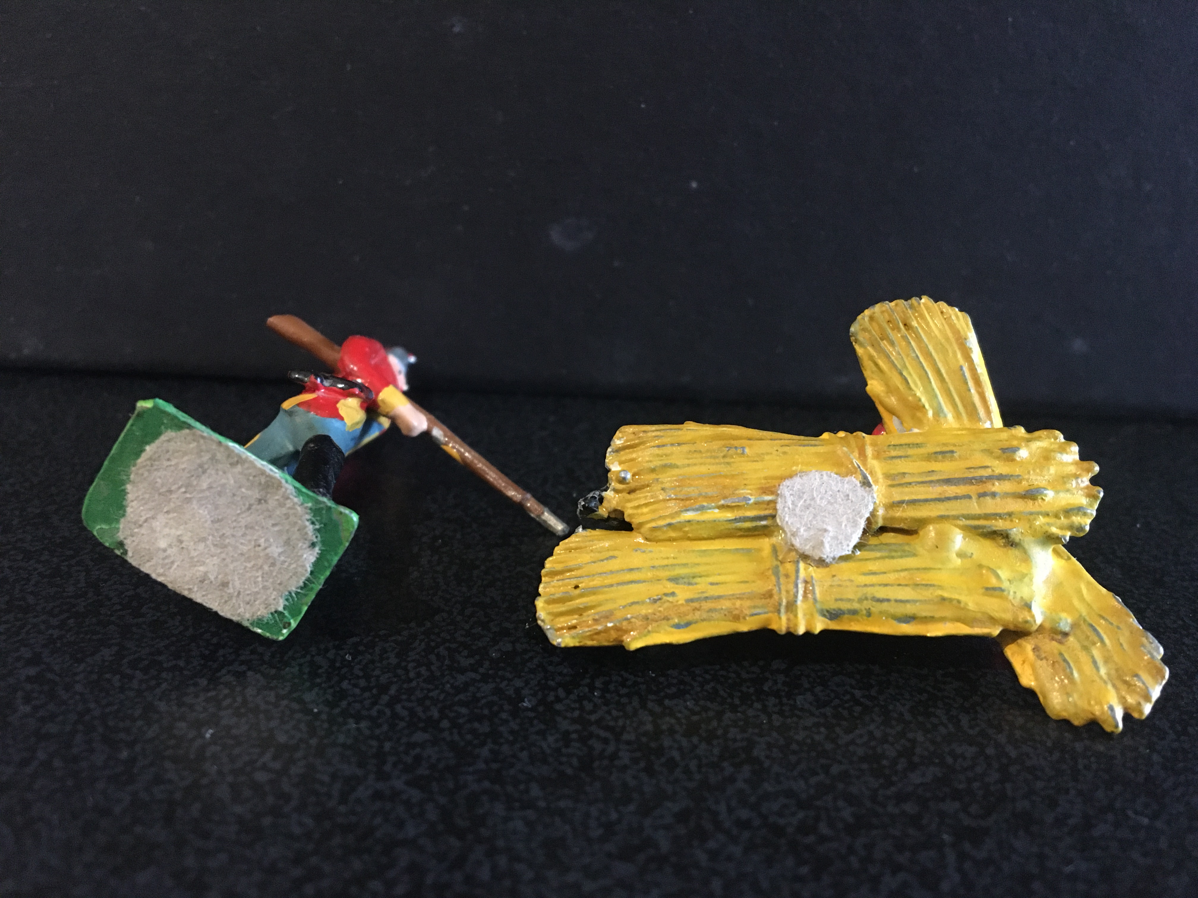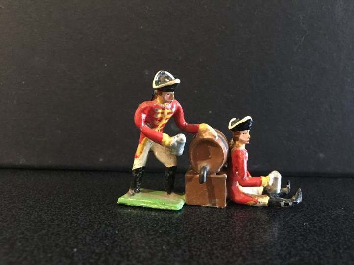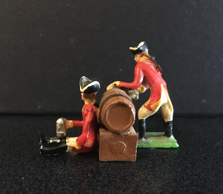 I’ve always liked 48mm Heyde toy soldiers and, as with all my collection, had to decide which small cameo to add, representing this manufacturer. Some are too rare and expensive, others too common (still expensive) or outside my areas of interest. Eventually I decided on this scene. There are a number of different elements and no box seems to have be sold with them all. I’ve also added extra accessories that I feel fit into the scene. I only use Heyde but as most accessories were used in different sets, I’m not particular about them; if they look ok, I’ll use them.