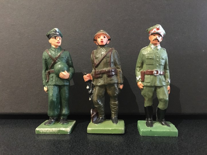 Here are three WW2 Polish regular army figures, not from the same set but the same scale. Notice the accuracy of the equipment shown on the full battle dress figure.