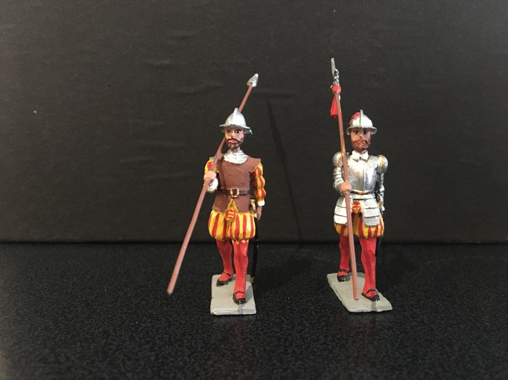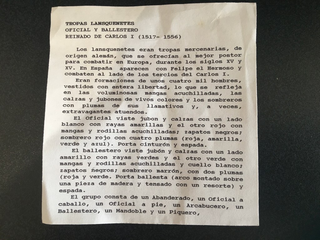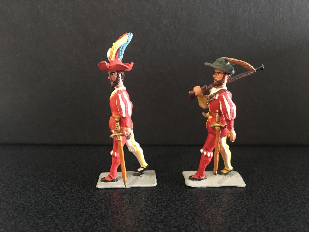 This is the first post showing the work of Sanquez; a Spanish toy soldier maker. These figures were probably made from the 1950’s to 1980’s, I’m not absolutely sure. Sanquez made other earlier figures in other scales but I don’t know much about them. I’m drawn to this range by the subject; a Spanish renaissance army, the distinctive style of sculpture, and the breadth of the range. Over the last 20 or so years I’ve collected a good representation, but there are still many figures I haven’t managed to find, amongst which is a magnificent ox-drawn siege gun, although I do have a few of the figures that accompanied it.