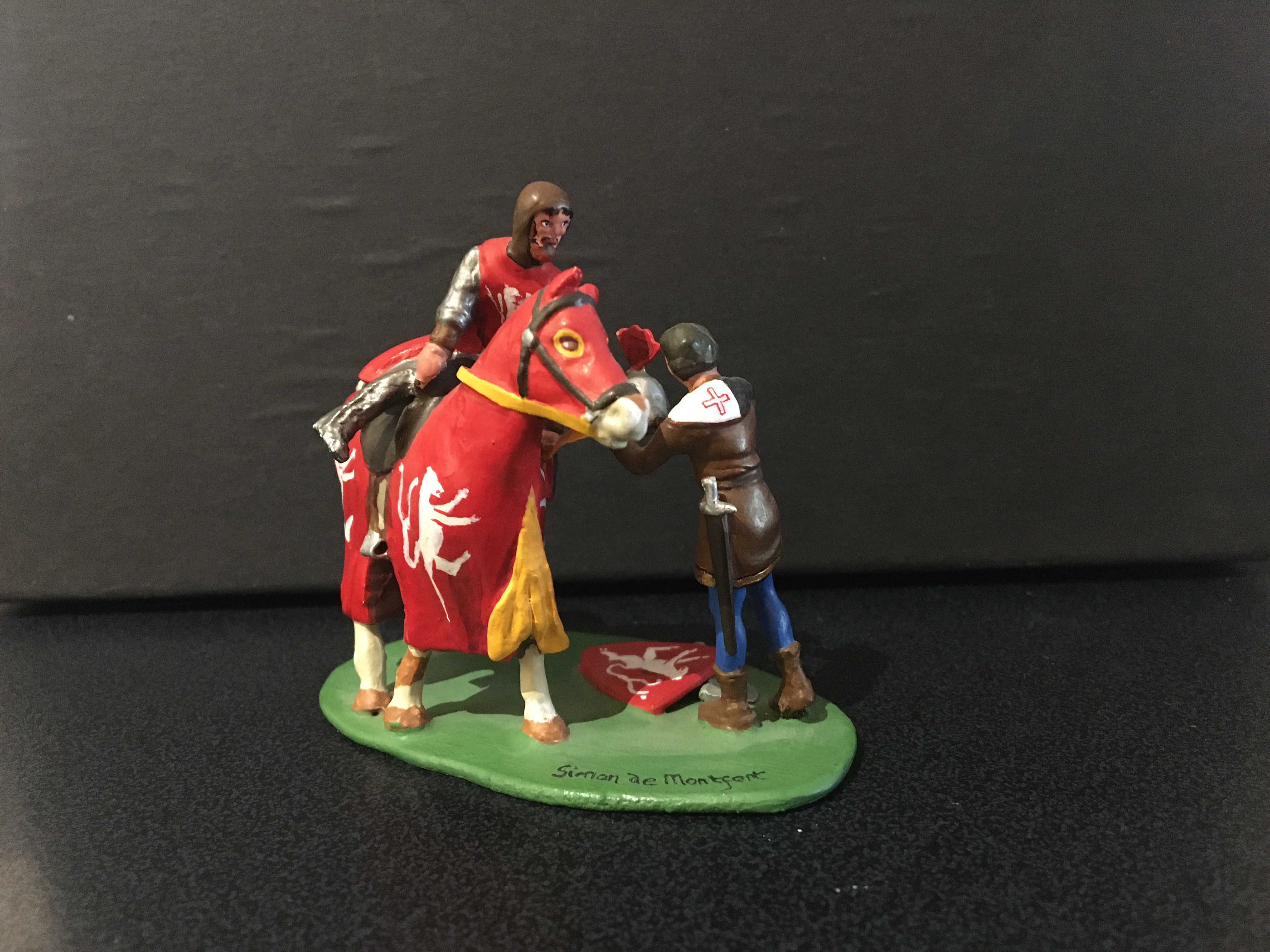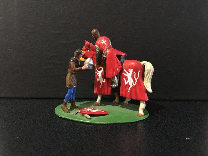 I’ve retained only a couple of the toy figures I used to make to order. Below is a duplex of Simon de Montfort and a young squire helping him arm for the Battle of Lewes. They could be ordered in matt or gloss finish.