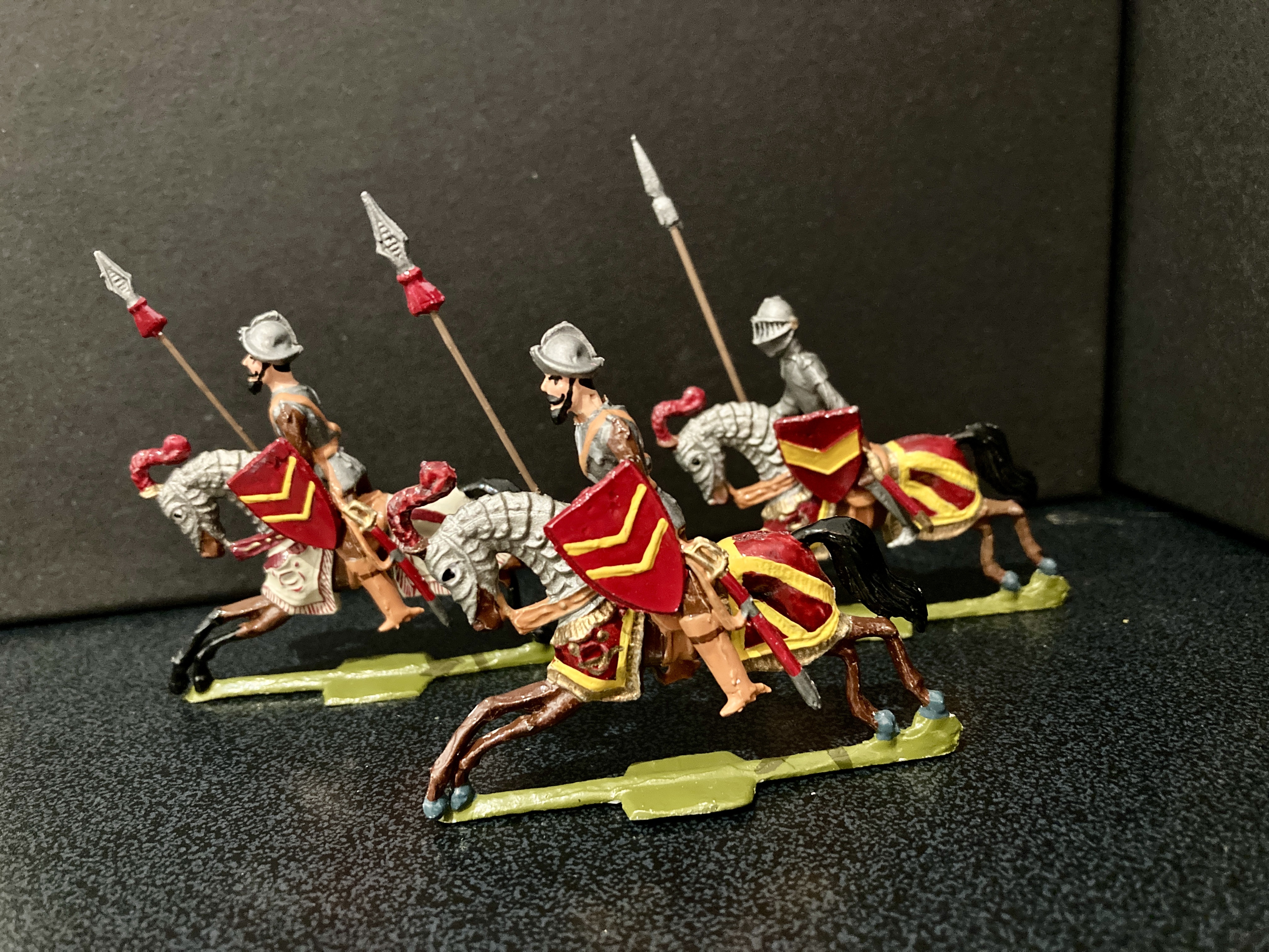 Let’s start with the Spanish conquistadors. Joe Shimek used Heyde, Haffner and Spenchuk figures to base his on and added his own compatible sculpts. So, the first set of images are mounted and foot conquistadors; marching and in action.