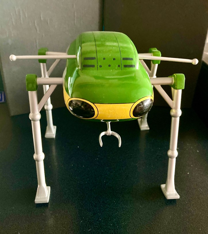 If you’ve read my posts you will know that although my collecting is eclectic, there are some themes that I like a lot. One of these is Dan Dare, the scifi hero of Eagle comics of the 1950’s and 60’s. particularly the Rogue Planet story. Look it up, a great story with wonderful illustrations and a classic alien race; the Phants. Some years back Unicorn Miniatures made a great set of figures depicting many Dan Dare figures, particularly the Phants. You can still get them now and again on Ebay. Here are the Phants and with them a fantastic model of a Phant war machine. This was one of a series of space models made to order in the 1980’s from Indonesia. Made of wood it’s a spectacular model and compliments the figures, although to scale it would be even larger.