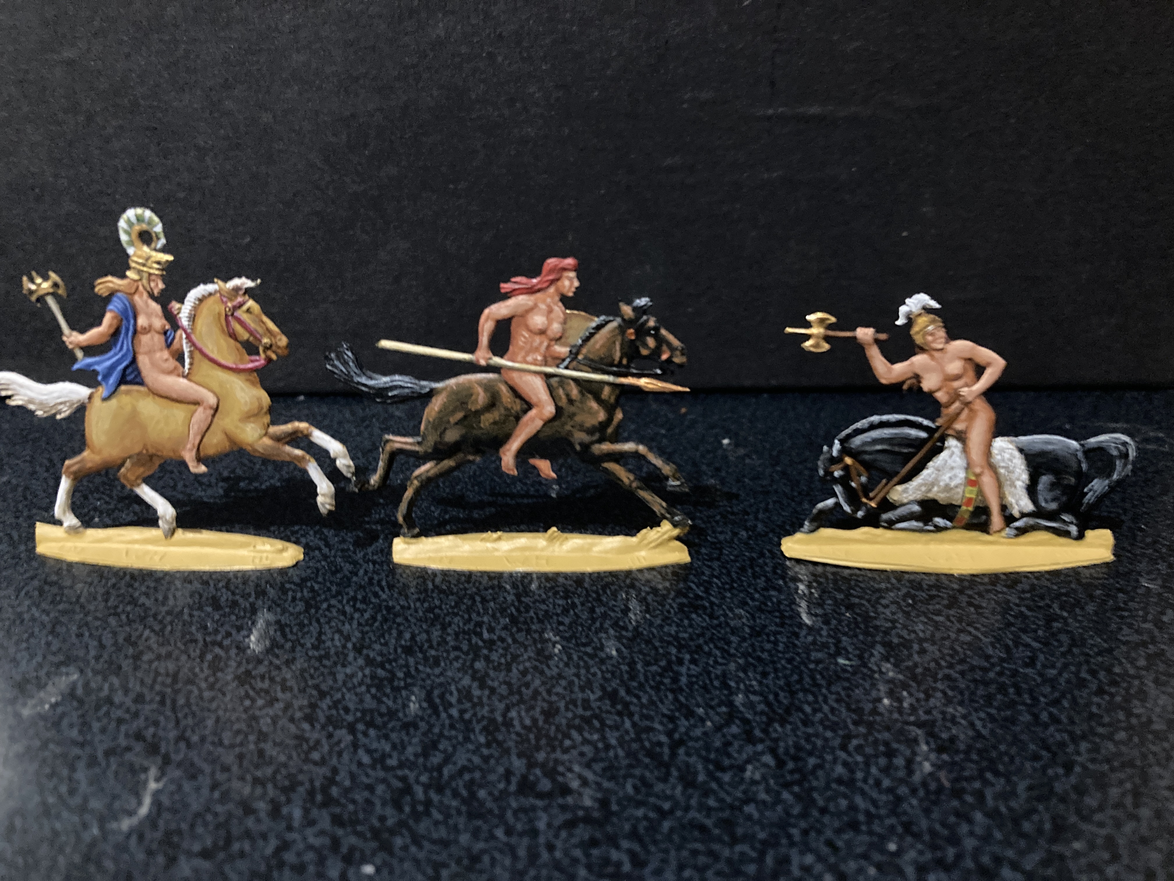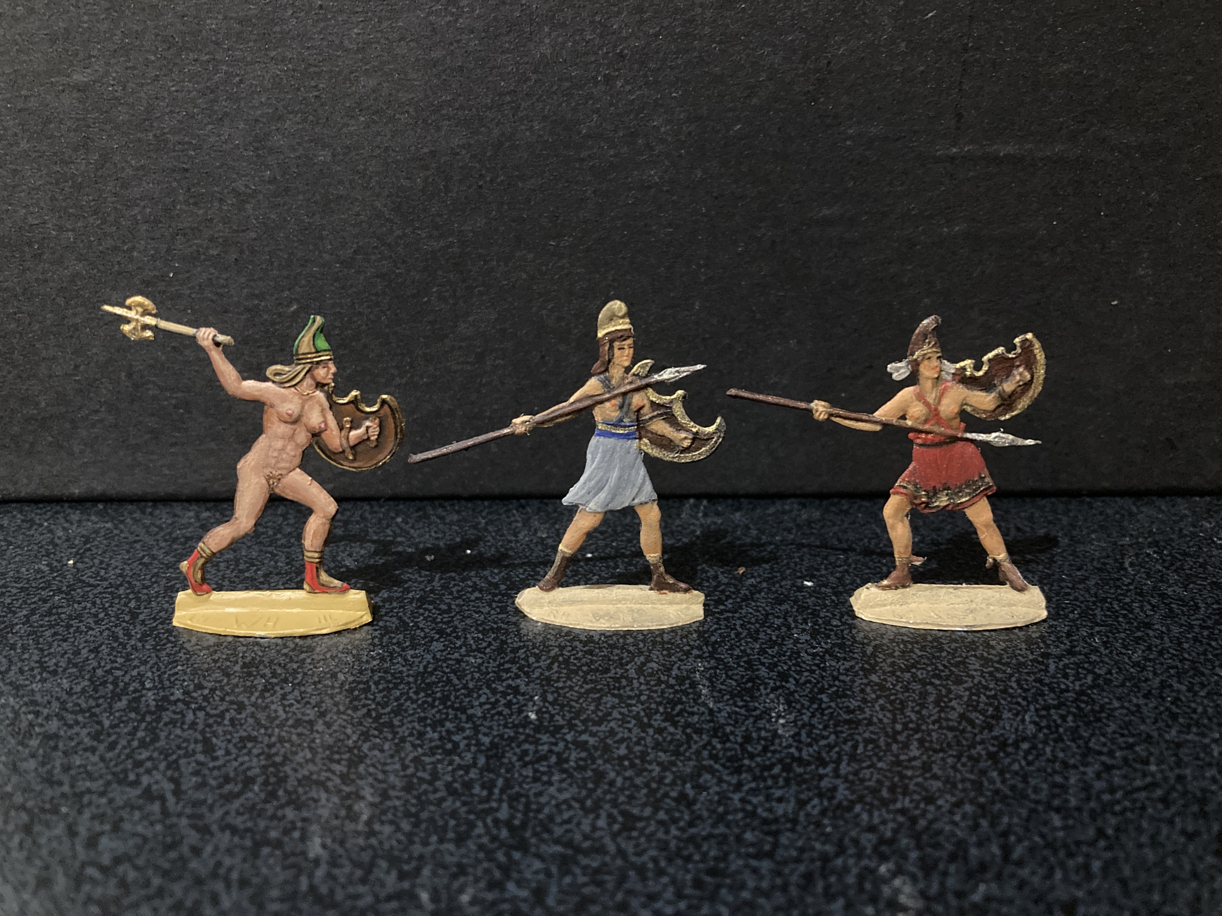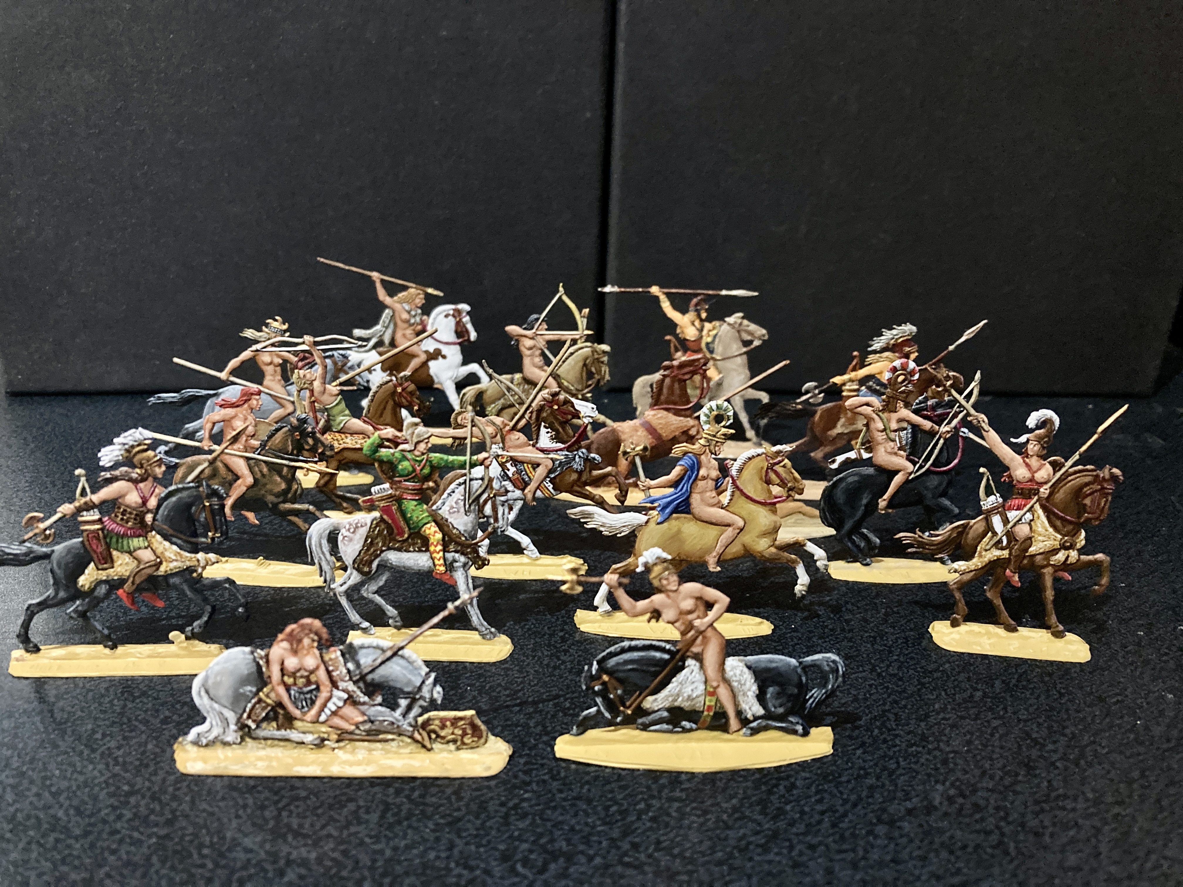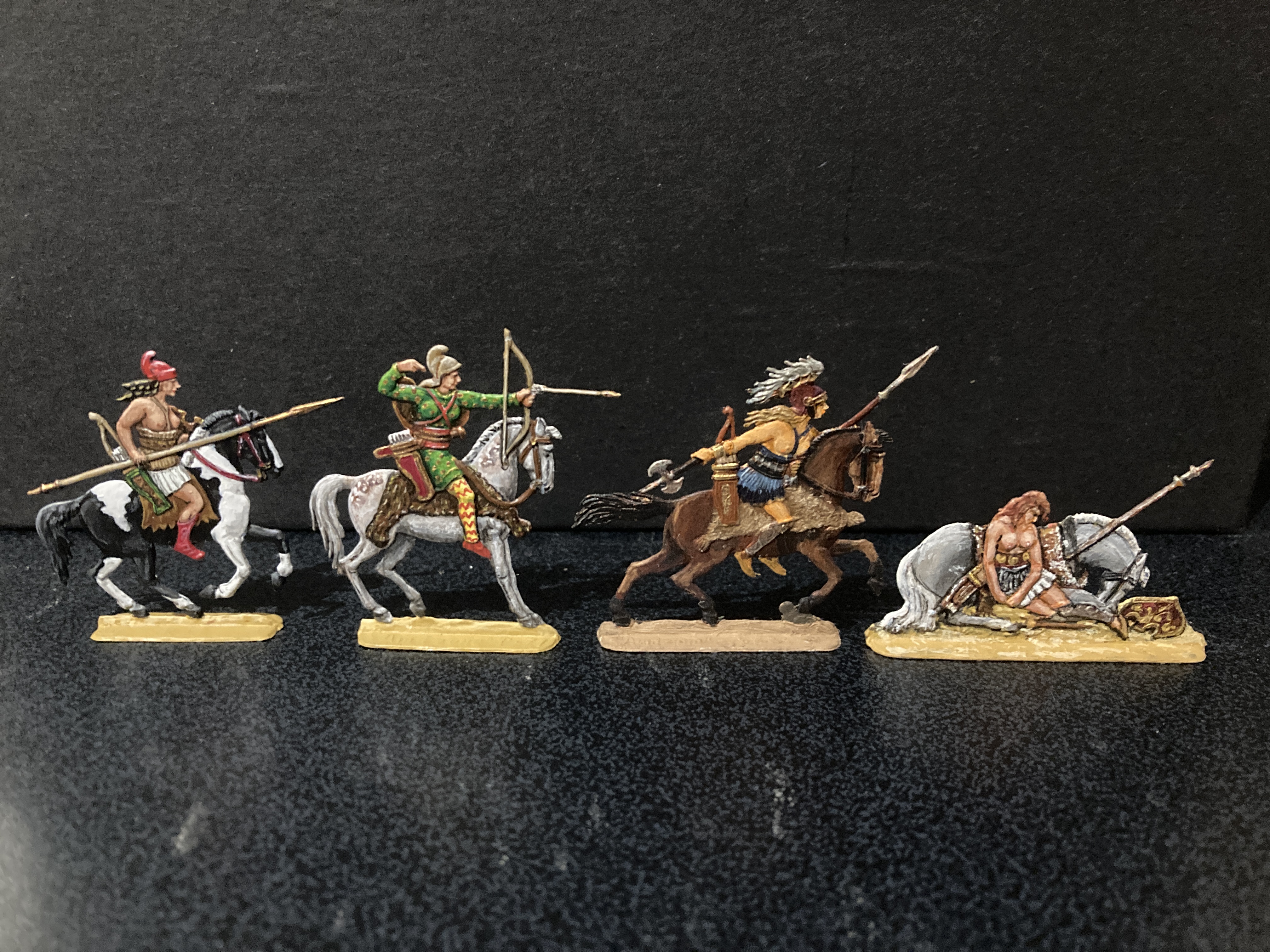 1. Dear James, the amazons seen in pics 3 and 5 were made by Retter, as part of the Trojan War series, TR67 – TR72, the one sitting defeated in front of the horse is TR73. They are apparently still being made by a man named Dangelmaier, you can find his portfolio here: https://www.zinnfigurenfreunde-leipzig.de/her/da/da2.htm