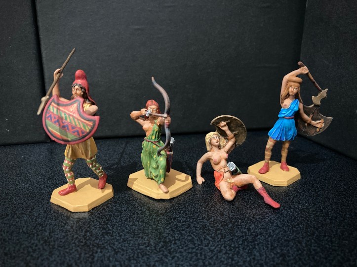 I will be adding to this post as and when I completed more Rose figures from this comprehensive range. I still have more musicians and dancers to add. Meanwhile here are the only four Amazon warriors from the Rose range. I am sure that these were modelled from Amazons depicted in Classical Greek art; vases etc. Click on images to enlarge.