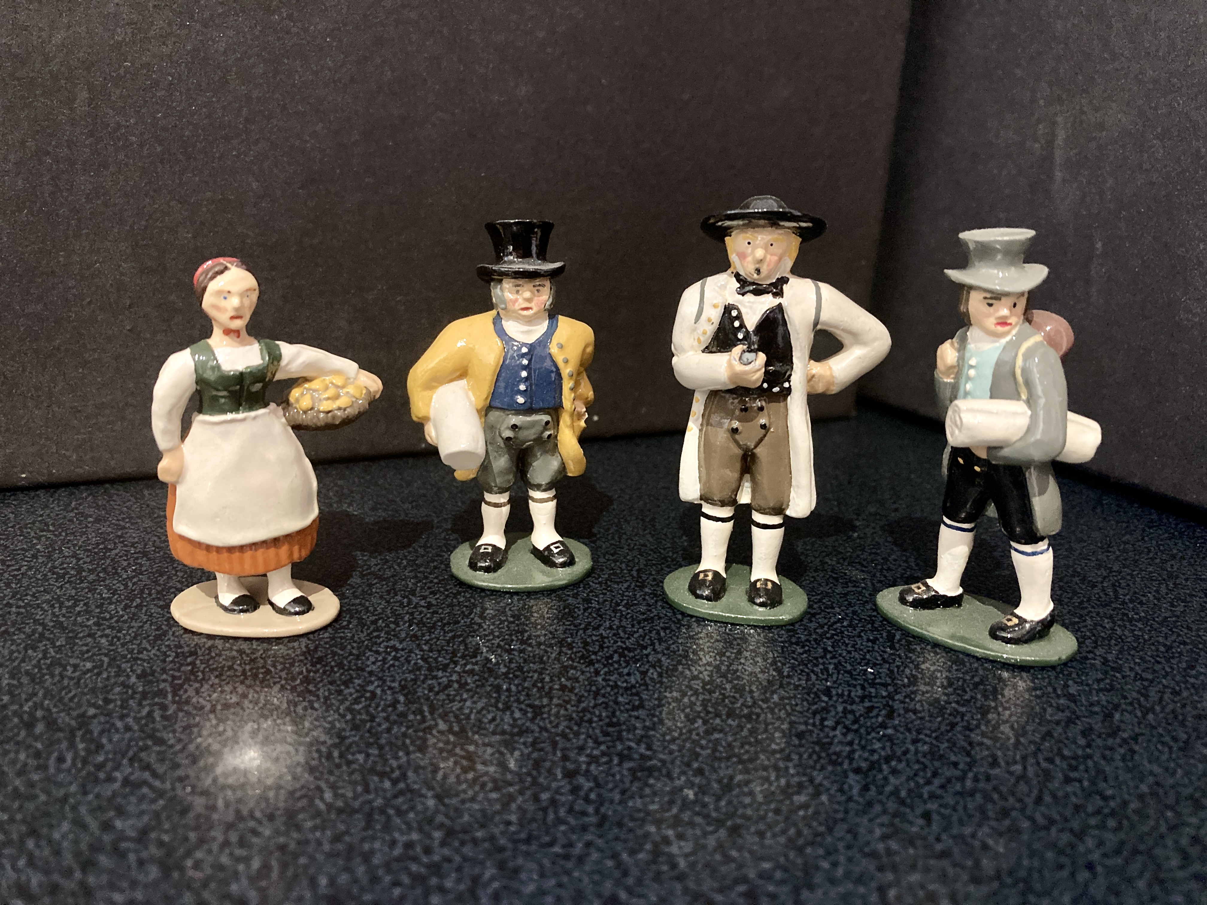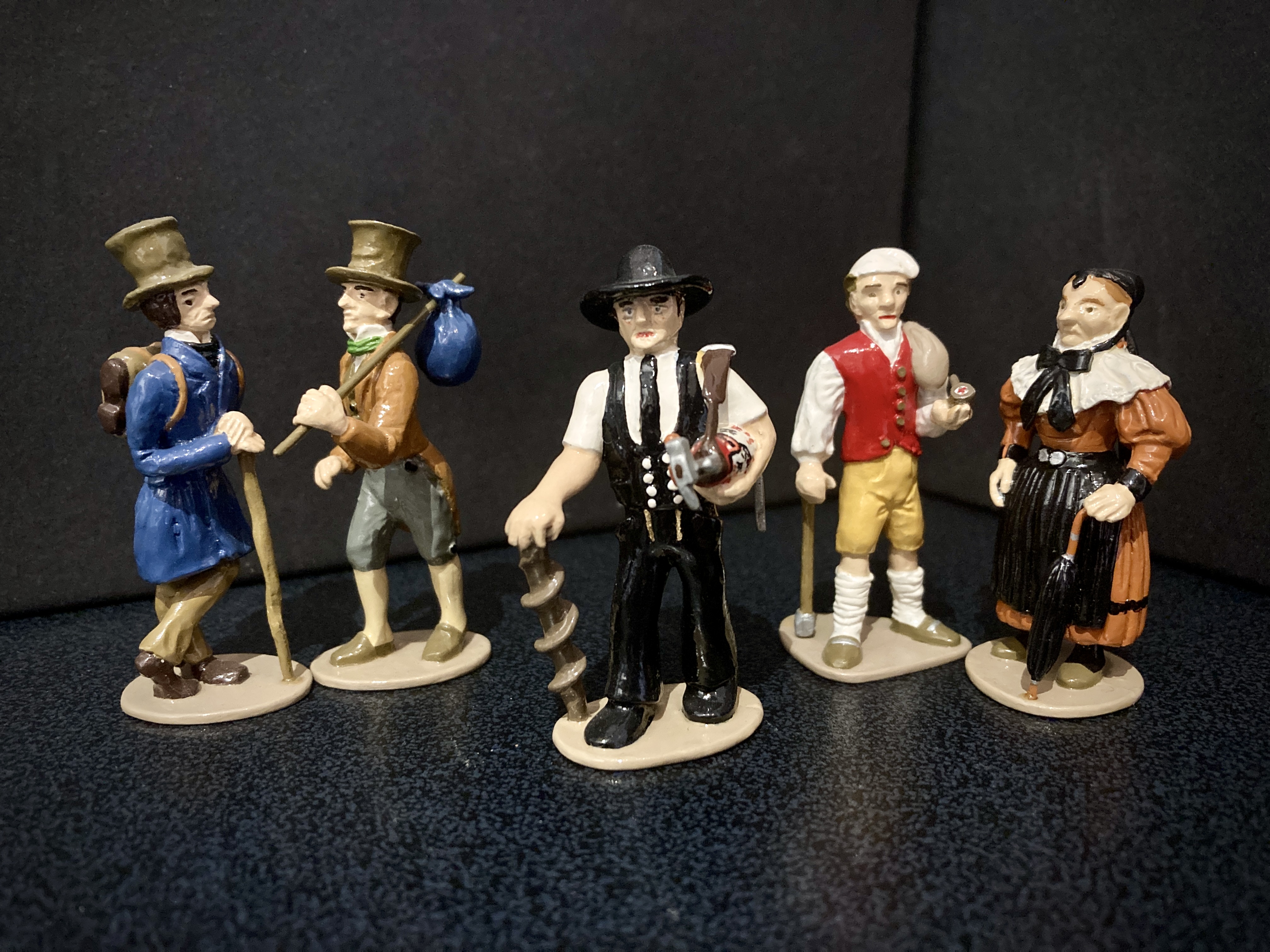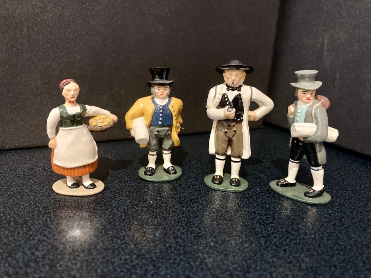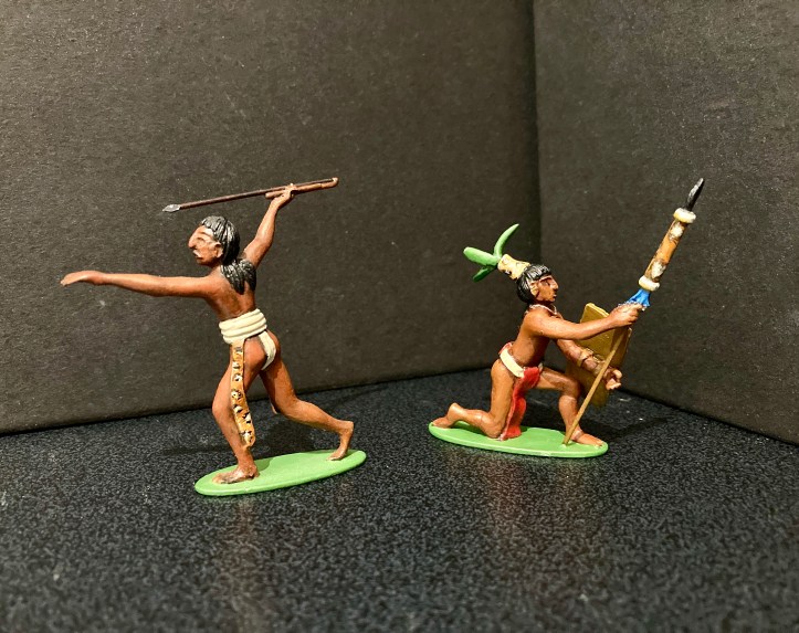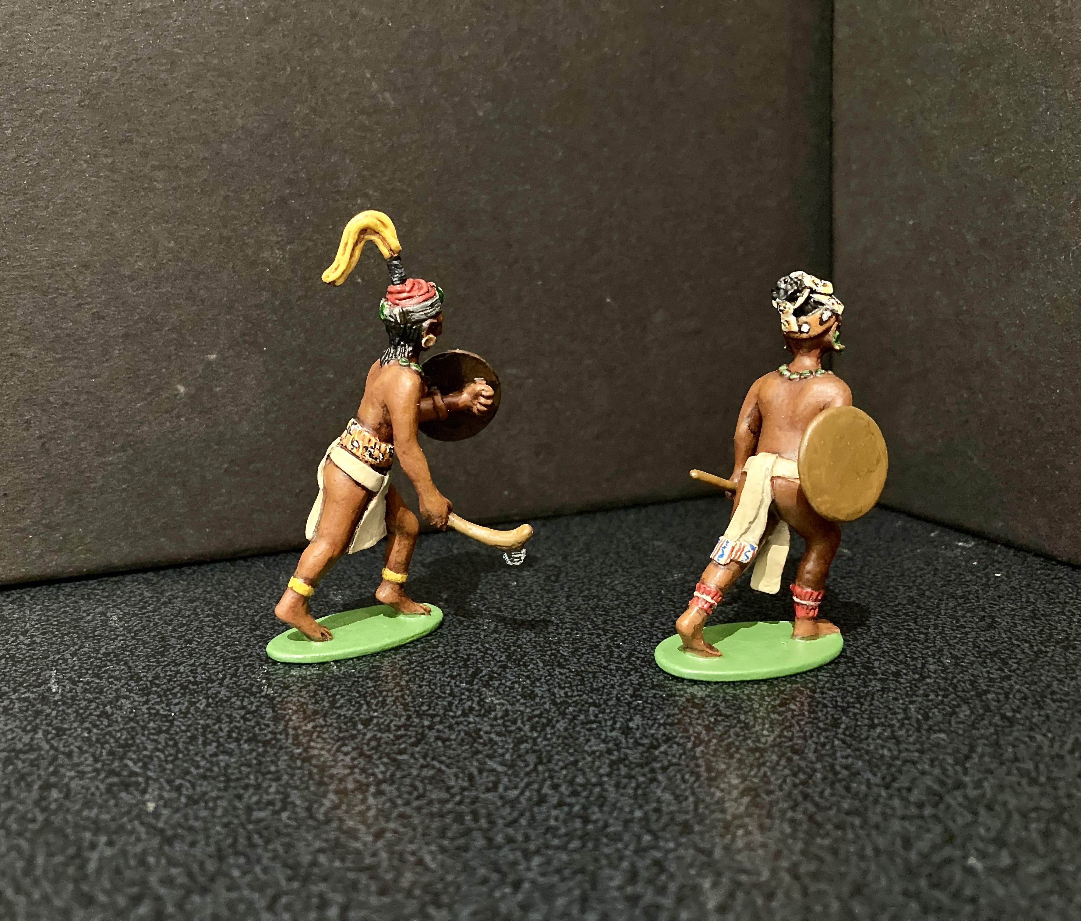 Below are more examples of his work. The two on the left are depictions of the intinerant workers who travelled the 19th century German states and cities. The one on the right speaks for itself. Comparing the groups you can see that he uses a specific artistic style. This is typical of individual sculpters of figures from earliest times, the swagger of French figures, the imperial arrogance of Britains, the solid, carved bulk of Marcus Hintons, the delicate superiority in Greenwood and Ball early 54mm gems, I could go on. It’s something that’s in danger of being lost in modern, machine sculpted figures. Click on any image to enlarge. All the figures below were painted by Robert, I painted the Mayans. I’ll add more of his figures when I find where I’ve stored them.
