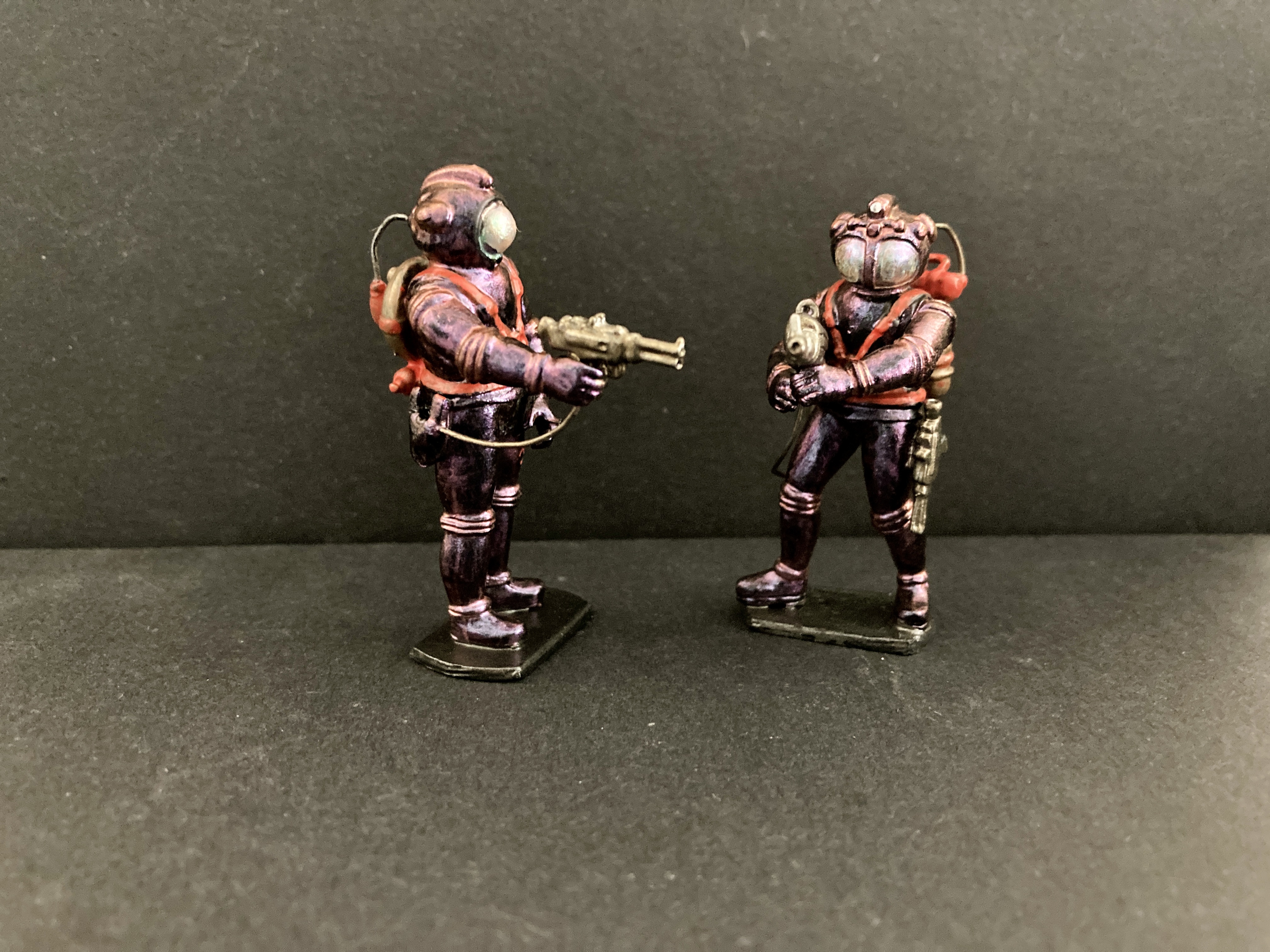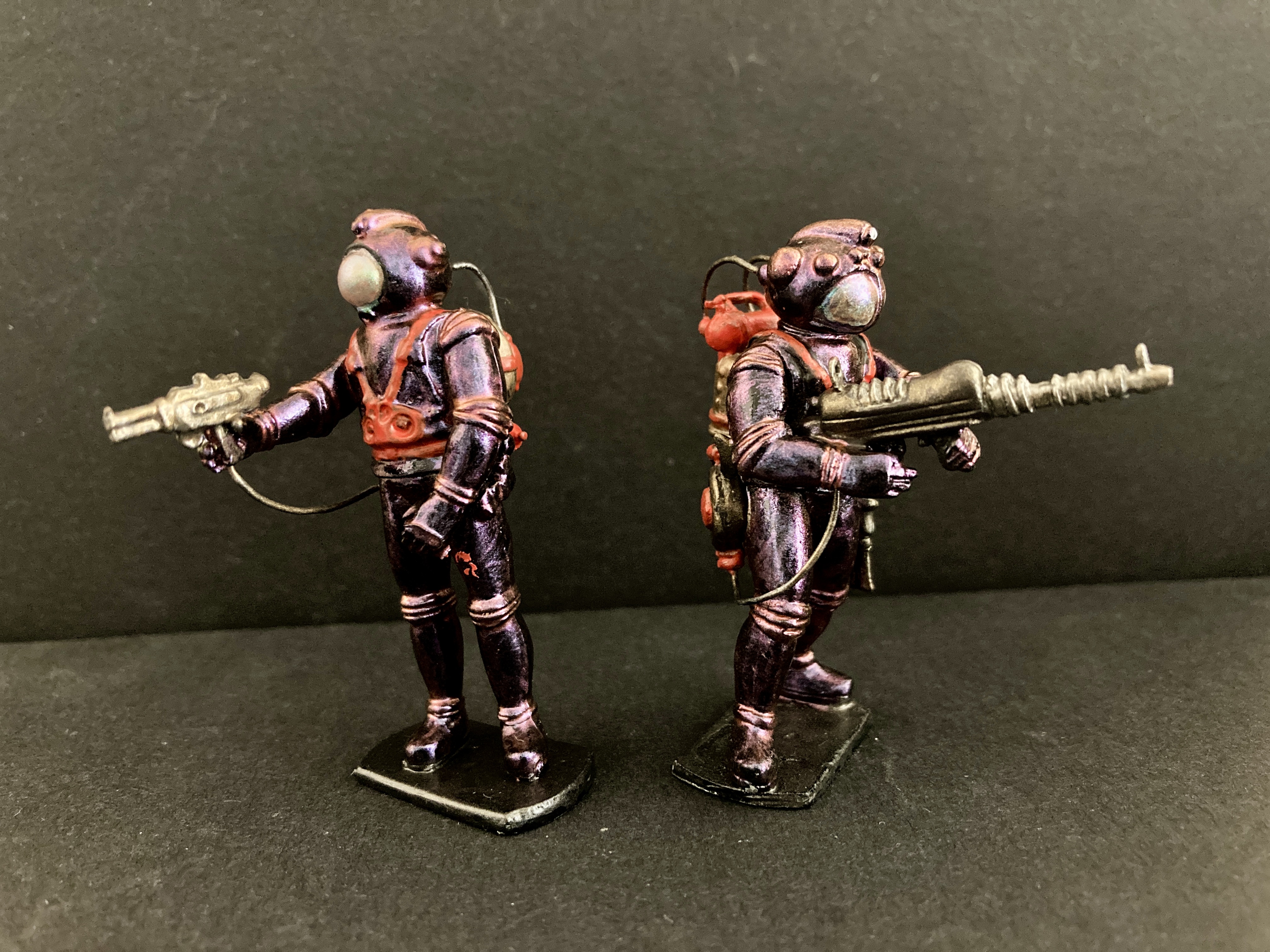 Here are two examples of the range, Federation Marines. based on the illustrations in Scion comics (late 40s early 50’s) by Ron Turner. These will be ready for sale in limited numbers in a month or so. If you are interested get in touch by email: info@jimstoysoldiers.com