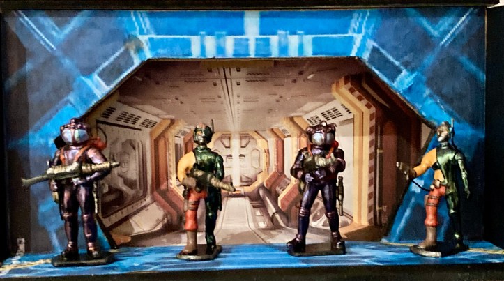 This range is now in initial production. It will be available soon in boxed sets of two or more figures, as requested. Each figure is white metal, true 54mm scaled to suite the character, all individually posed and painted. Accessories will also be available. Each figure will come with a background story. The first figures are Federation Deep-Space Marines and Scybot allies. Other types of retro-sci fi figures from this range are on the way and images will be added. Please contact me for further details. email: info@jimstoysoldiers.com